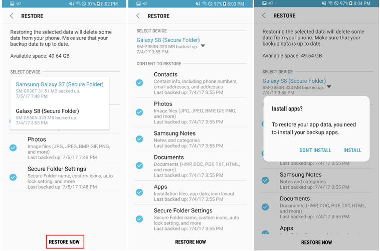 Ora è il momento di scoprire come sarà possibile recuperare le foto da Samsung secure cartella. Bene, il processo di recupero è molto semplice se hai eseguito il di riserva di quelle immagini prima dell’eliminazione.